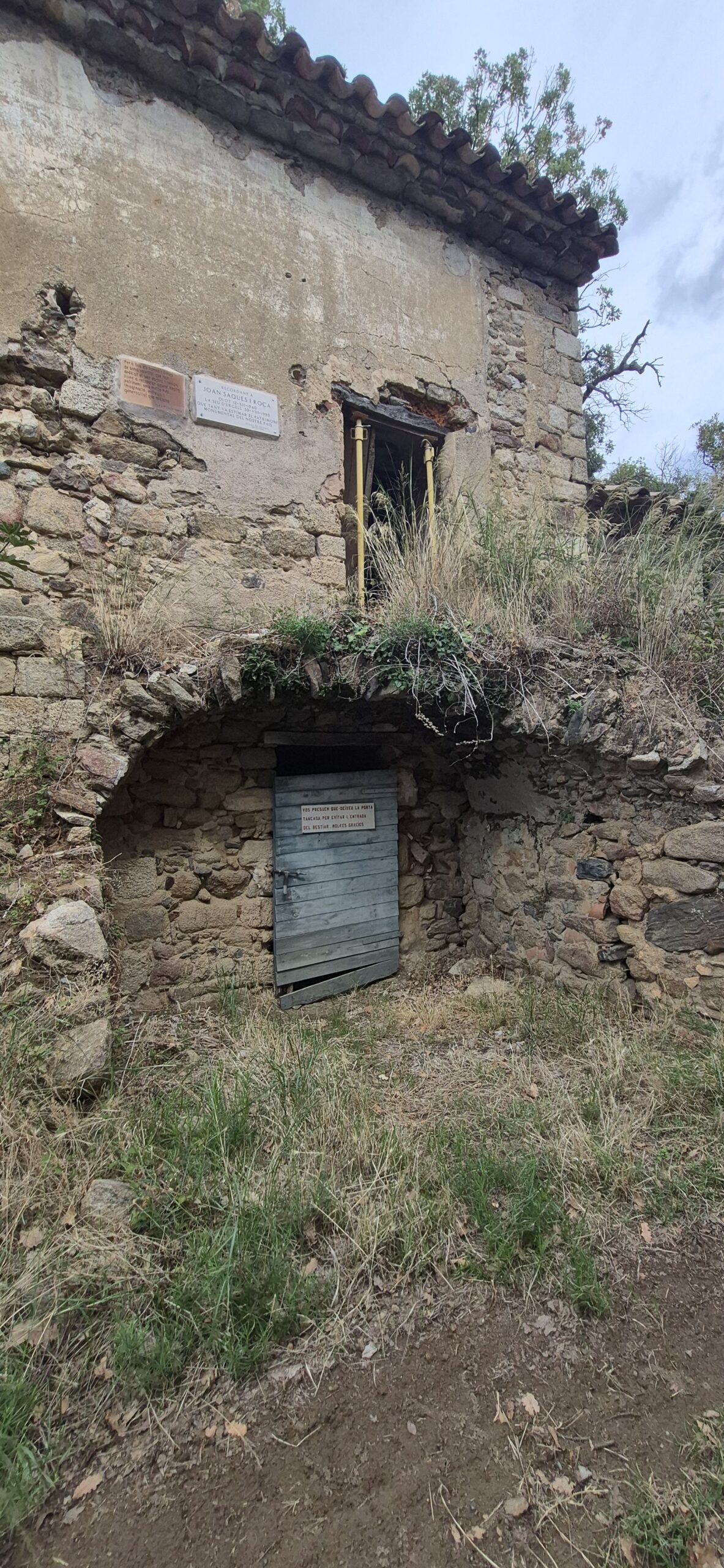 Aan de gevel hangt een gedenkplaat voor Joan Saqués i Roca (1940–1995), die een leven lang streed voor het behoud van Catalaans erfgoed. Naast zijn naam staat een plaquette gewijd aan alle vrijwilligers “die met verbeelding en inzet dit erfgoed helpen bewaren”. Deze woorden geven de plek een tweede laag: niet alleen historisch, maar ook moreel waardevol.