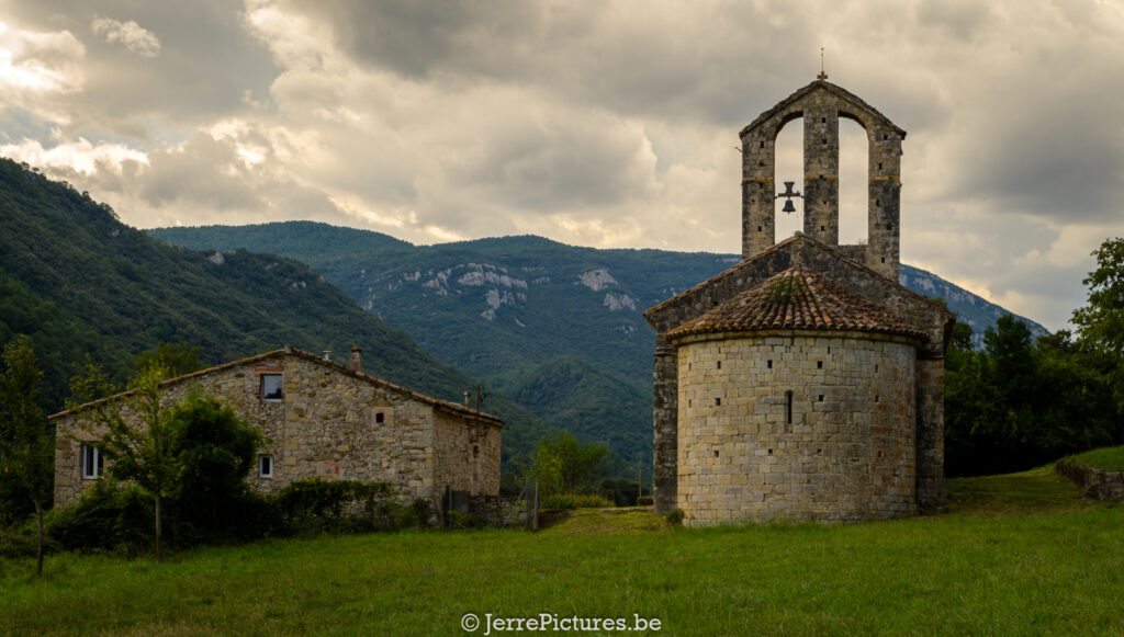 Hoog in de heuvels van l’Alta Garrotxa ligt Sant Andreu de Gitarriu: een sobere romaanse kapel met wortels in de 13e eeuw, maar mogelijk ouder. Oorspronkelijk bekend als Sancti Andree de Guitarrivo (1228), ademt de plek geschiedenis. De naam ‘Gitarriu’ zou afgeleid zijn van een verdwenen riviertje of een Germaanse persoonsnaam.