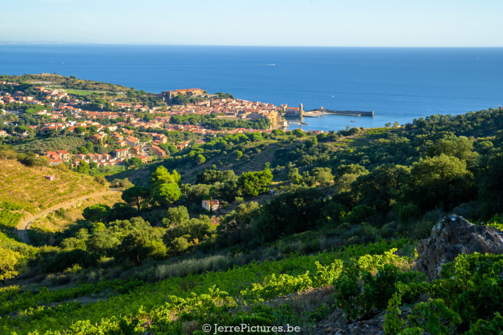 De route slingerde ons omhoog door de heuvels, weg van de drukte. De smalle wegen boden prachtige doorkijkjes op Collioure. De sfeer veranderde van gehaast en gestrest naar rustgevend en avontuurlijk.