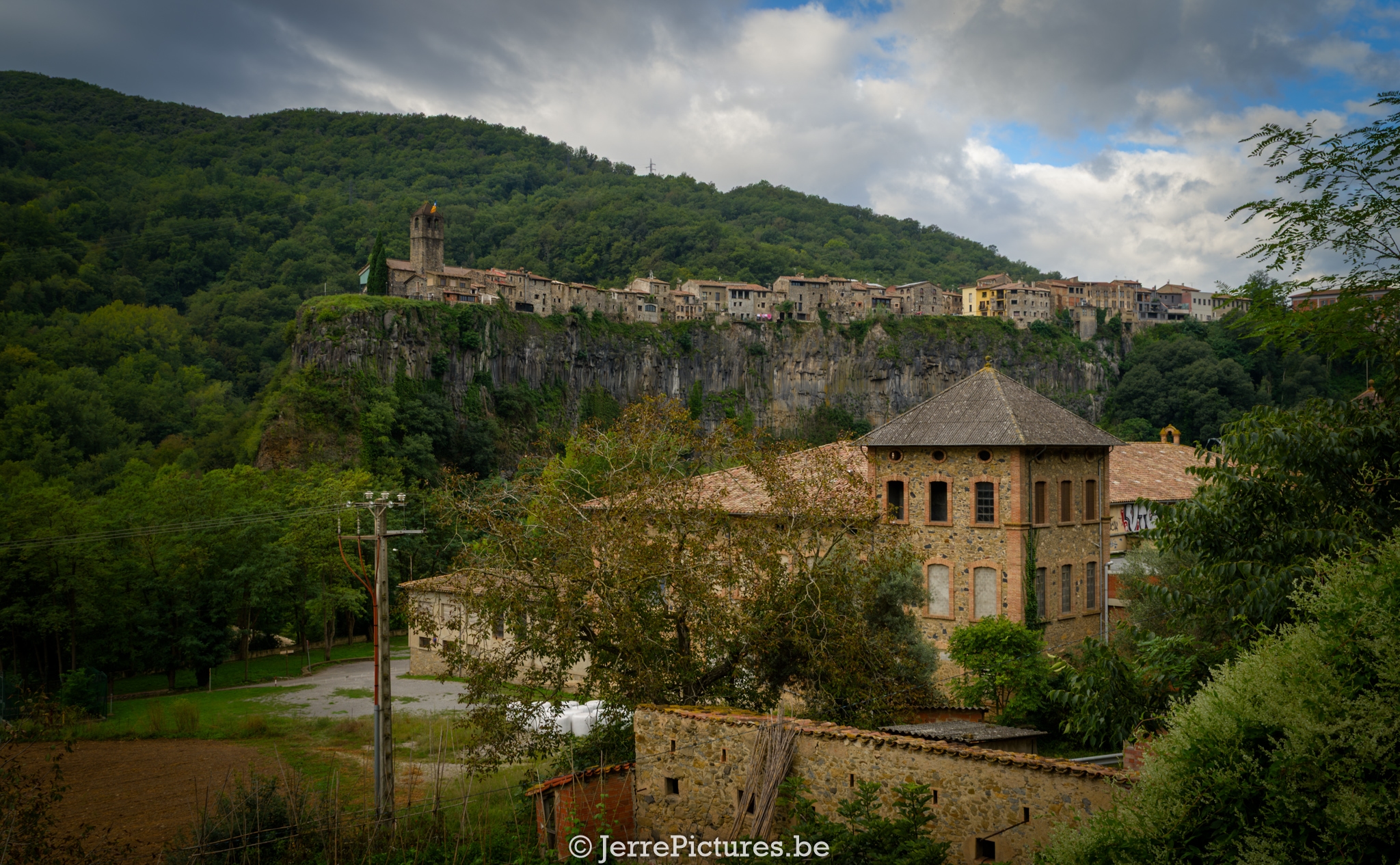 Vanuit onze basis was het een korte rit naar Castellfollit de la Roca. Een mooi zijsprongetje aangegeven door onze gids van Vibracation! Ik geef het toe: ik sta normaal niet te springen om toeristische hotspots af te vinken. Maar soms moet je je principes even parkeren, want dit dorp tart elke verbeelding.